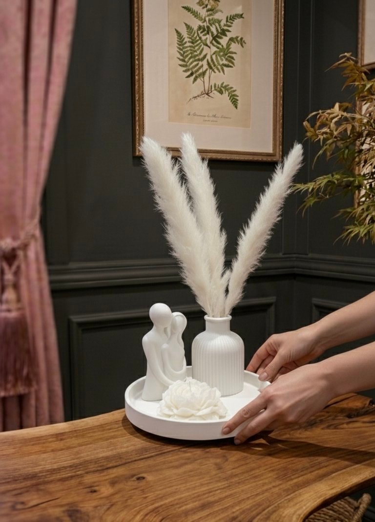 1 x Large Round Display Tray: A high-quality minimalist base for cohesive styling.